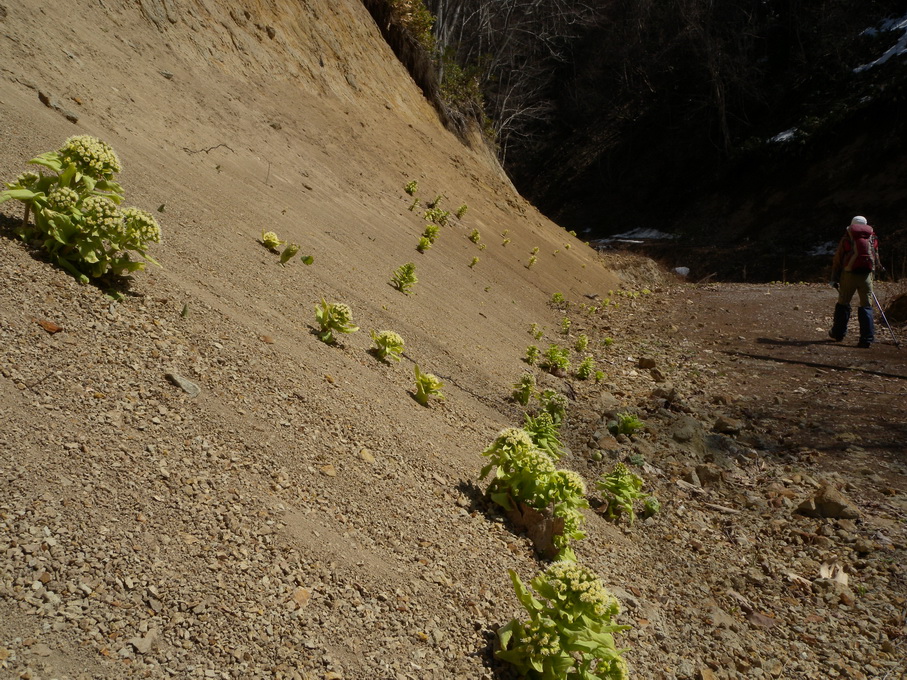 サンカヨウの群生地があったが開花はもう少し先に残念。