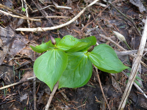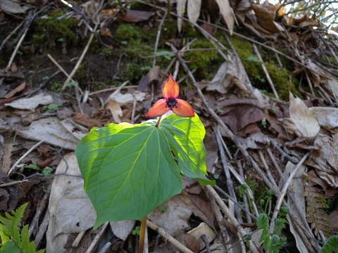 馬追丘陵は古山を散策してきた。ここにもクロミノヒダカエンレイソウがあったが花弁が萎れた感じ。