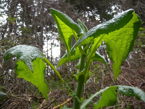 ミヤマイラクサ畑で茎や葉に刺が多く痛い痛い・・・