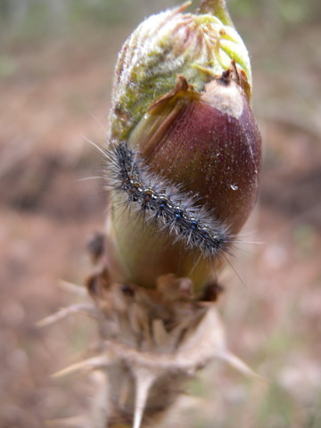 タランボの芽に毛虫がー、付近のタランボにも付いていた。