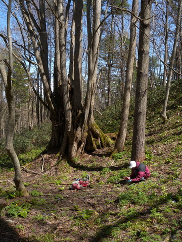 お気に入りの「カツラの花園」は福寿草が多く、エゾエンゴサクは少なくこれからだ。